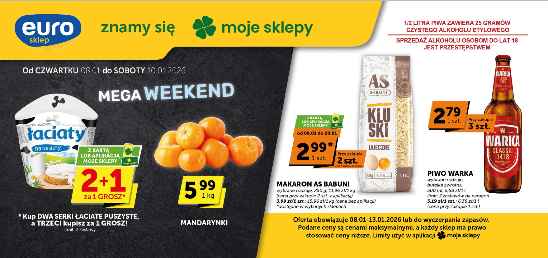SUPERMARKET Piątka, działa na rynku od 2007r. Jesteśmy zrzeszeni w ramach franczyzy w sieci „eurosklep” dzięki czemu pozycja naszego sklepu jest stabilna i konkurencyjna.